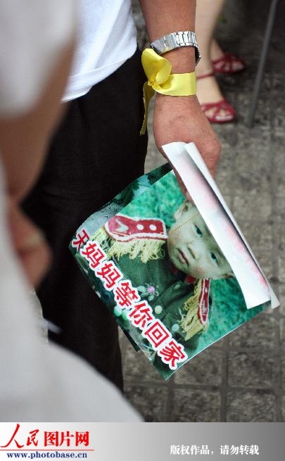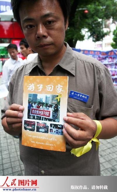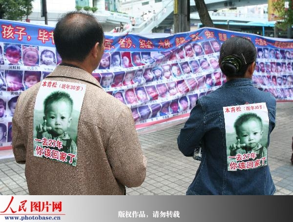 2009年10月10日,寻亲家长手拿写有“妈妈等你回家”字样的失踪孩子的照片,在福州东街口向路人求助。
