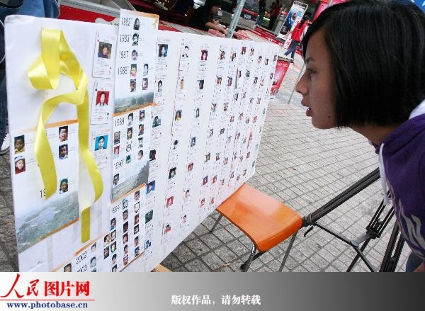 2009年10月10日,路人在福州东街口看失踪孩子的扑克照片。