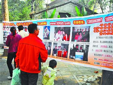 今天上午10点多,记者来到中山公园。此时,沈浩和两位寻亲志愿者已拉起宣传横幅。横幅上印有许多与家人失散的儿童照片。只要有市民上前观看、询问,沈浩和另两名志愿者就不厌其烦地讲述寻子扑克的事情,并送人家一副寻子扑克牌。