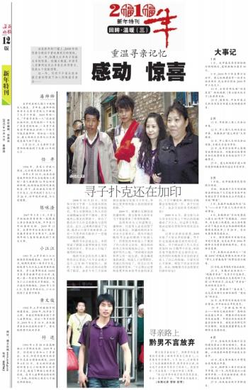 这一年,给遵义众多失子家庭太多的惊喜。经遵义晚报、中国寻人启事网站及众多家长共同努力,促成6个家庭团聚。